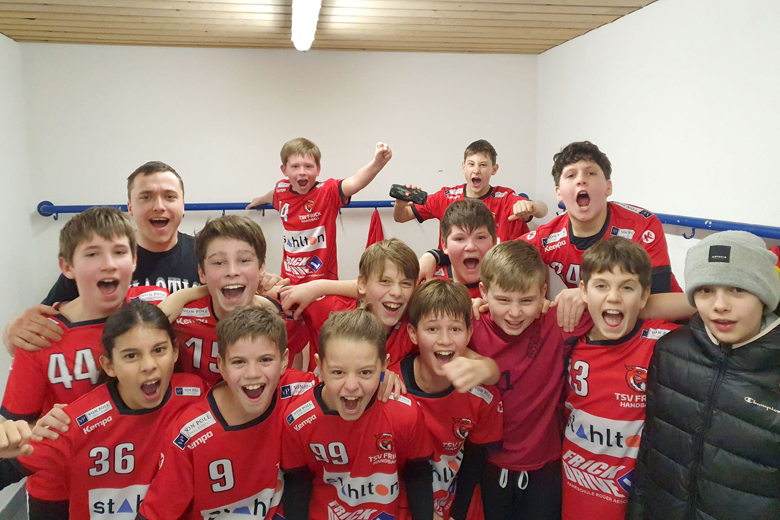 Schon fast wie bei „den Grossen“ war die Freude über den letzten Saisonsieg auch ausserhalb der Garderobe gut zu hören 😉 Schliesslich sicherte man sich mit dem Erfolg auch gleich den Gesamtsieg in der Gruppe!